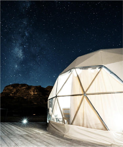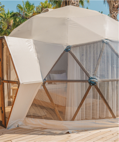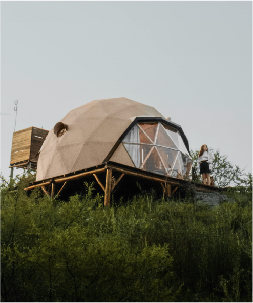 Descubre el confort de la arquitectura bioclimática en plena naturaleza con nuestro Domo 1, un espacio diseñado para ofrecerte una experiencia única de descanso, privacidad y conexión con el entorno.